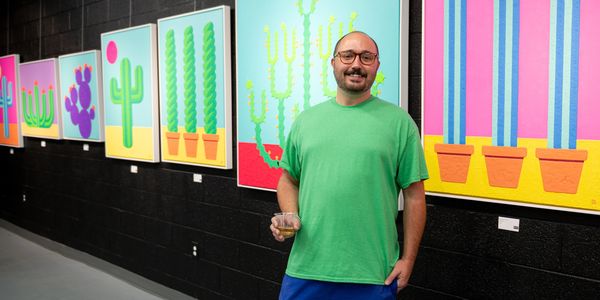 Based in Las Vegas for 15+ years, Michael Moats is a contemporary painter who floats between the worlds of minimalism and maximalism. Known for his crisp compositions often inspired by Nature, particularly the American Southwest, his work often breaks the subject down to its most minimal design elements and then exaggerates its colors and features, creating pieces which are bold and vibrant. His exploration of texture mediums mixed with acrylic paint adds an additional organic element to his work, often inciting a tactile response, urging the viewer to move in close to examine the organic textural details.